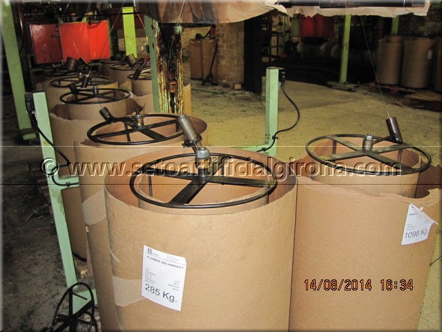 Maquinaria bobinando las bobinas de alambre galvanizado que después se colocarán en las maquinas tejedoras del Seto Artificial Girona. |